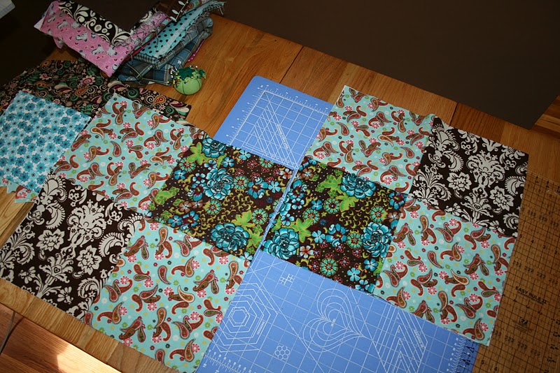 Here is everything cut out, from the left, the 10-inch squares, the big rectangles and the 8-inch square